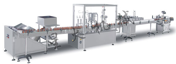 糖浆口服液灌装生产线由理瓶机、灌旋机、旋盖机、铝箔封口机、贴标机等组成,能把塑料瓶经整理后按序排列,经过滤压缩空气吹瓶洗瓶后进行灌装,瓶子经传感器检测到信号,由微电脑控制的各传感器和热打印机能自动完成进瓶、输瓶、出标、打码、贴标的动作。整线运行稳定,自动化程度高,尤其适用于中等规模生产。